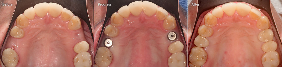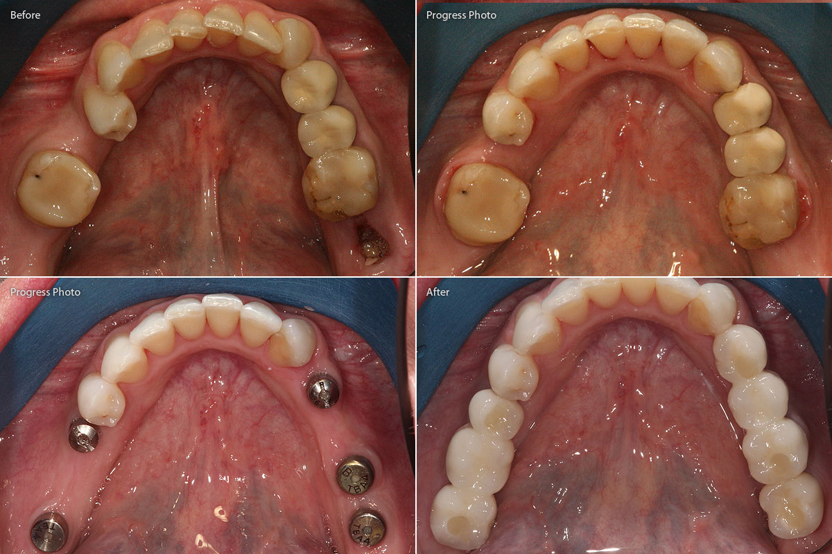 Photo album showing progress pics of clients who have had dental implants (full fixed; full removable, anterior and posterior)...